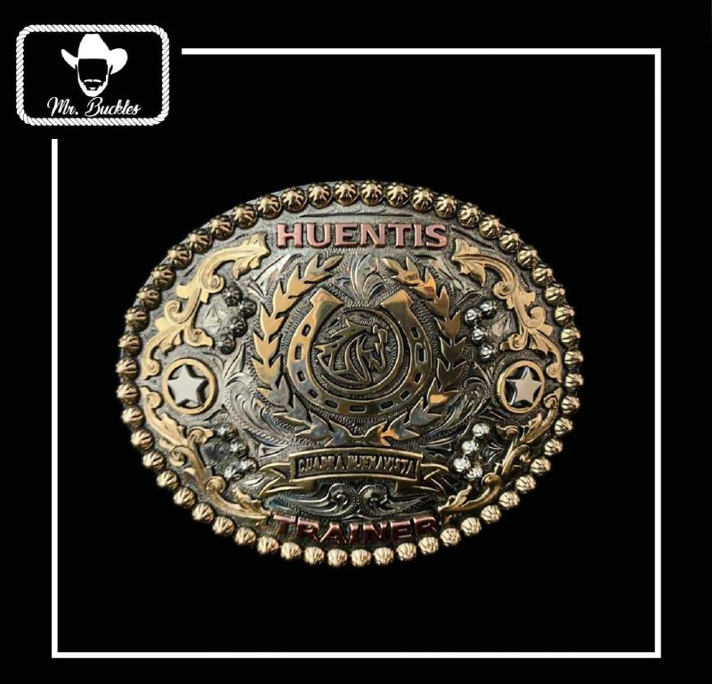 Beautifully handcrafted premium cut buckle, engraved background with bronze letters, gold scrolls, and brand makes this a premium cut buckle.